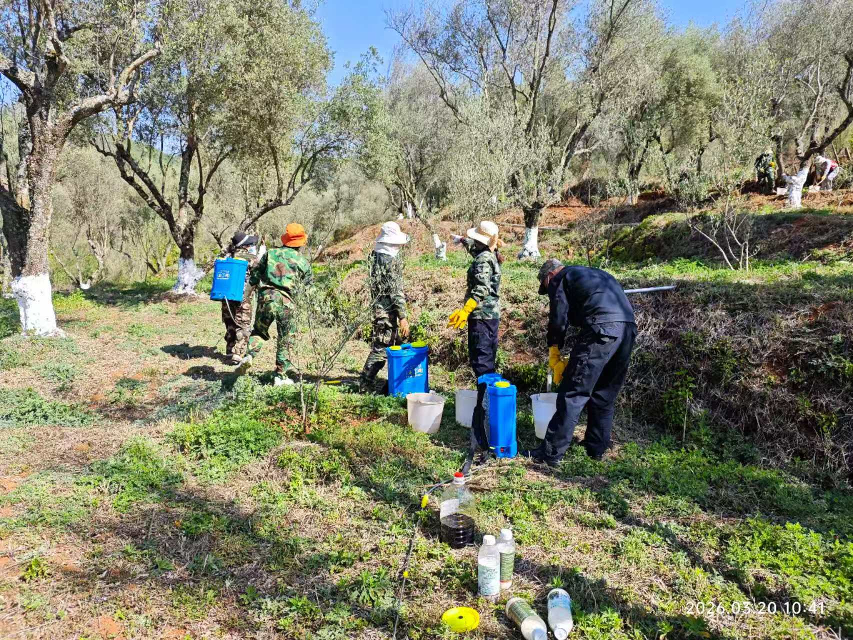 为切实加强“总理林”油橄榄树精细化管护,有效防控病虫害滋生蔓延,保障油橄榄树健康生长,2026年3月20日—23日,昆明市海口林场全场干部职工全员参与,全员上阵,对“总理林”油橄榄树集中开展了春季专项病虫害防治与精细化管护工作,有序组织开展油橄榄树集中农药喷洒作业,以全员凝心聚力、科学举措确保这片具有特殊历史意义的树木健康生长。